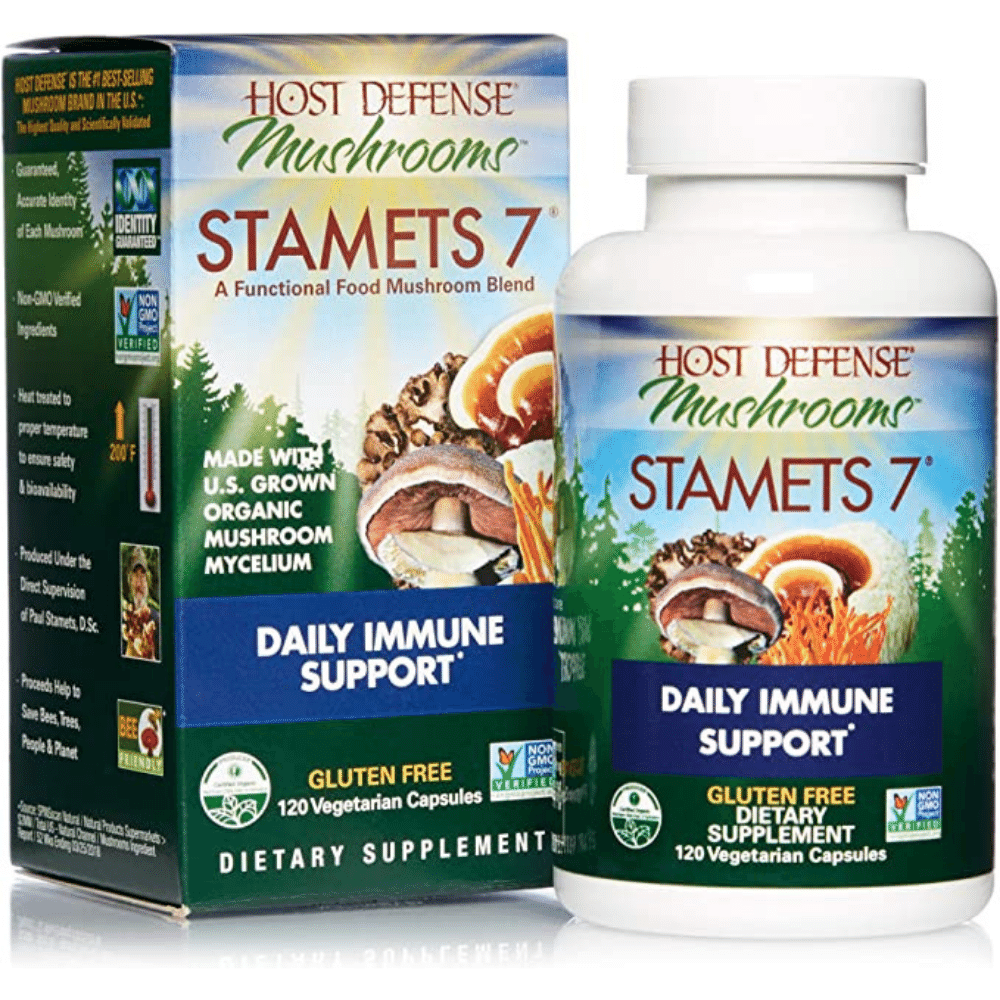 The Host Defense, Stamets 7 Capsules are a daily immune supplement that contains seven different mushroom varieties in every serving.